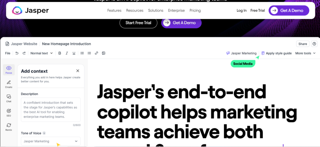 Jasper AI, previously known as Jarvis, stands out in the AI content creation arena due to its advanced language generation capabilities. Jasper AI, designed for marketers and content producers, specializes in creating engaging, SEO-optimized content in a variety of kinds. Its user-friendly interface and integration with SEO tools provide simplified content strategies, allowing users to rank better in search engine results and engage more effectively with their audiences.